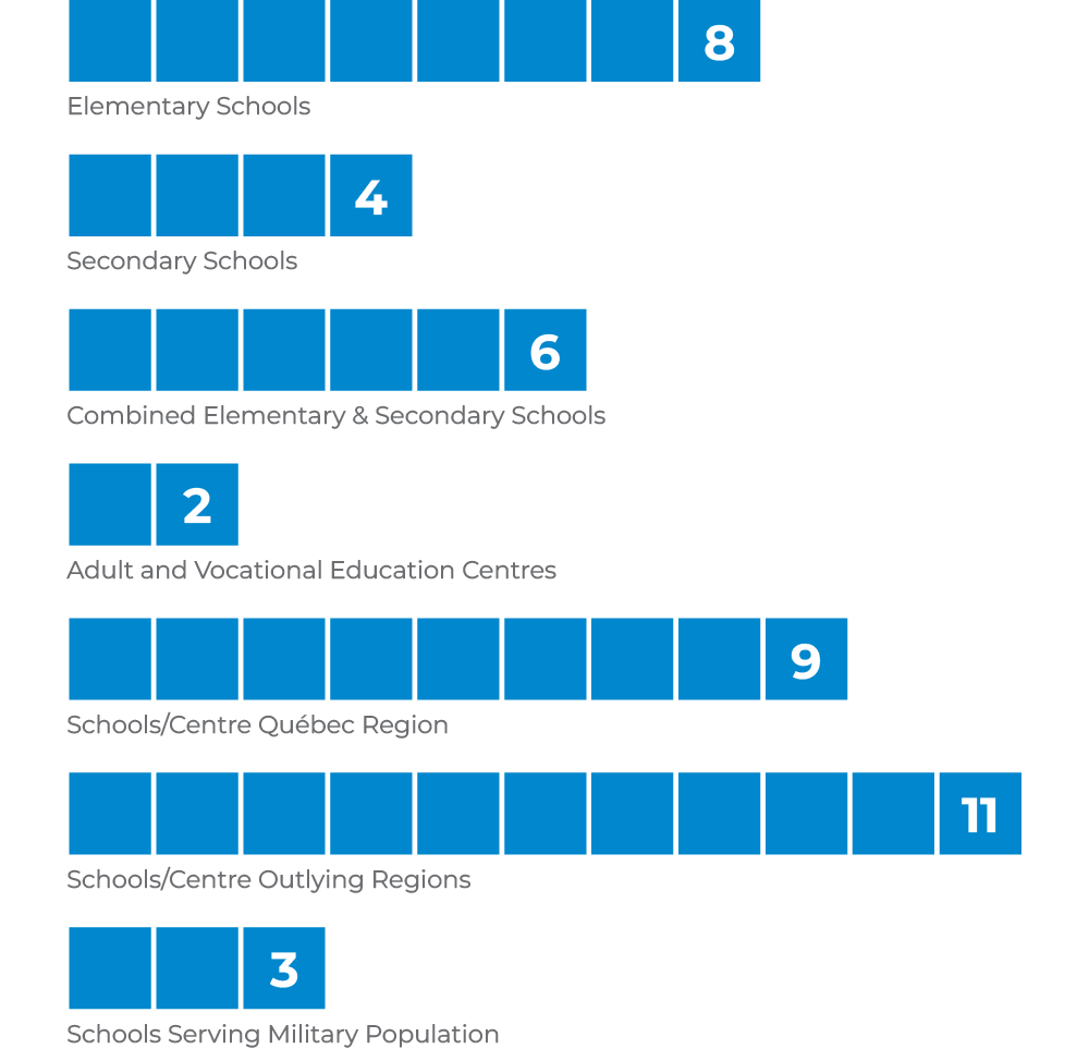 The CQSB is an English-language school board ensuring the management of a network of schools scattered over a vast territory and catering to the needs of over 5,200 students, youth and adults.