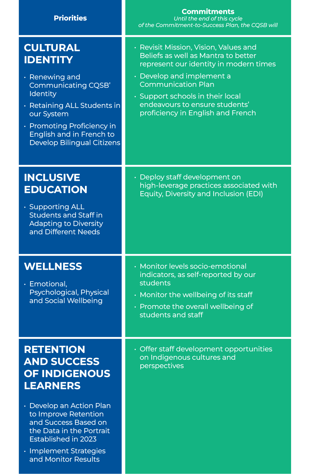 CQSB’S PRIORITIES AND COMMITMENTS