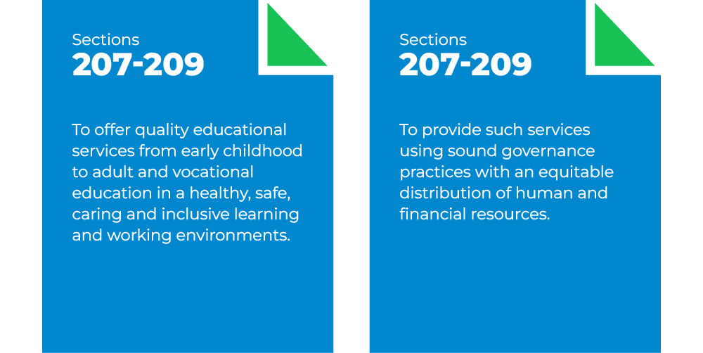 In keeping with its mandate as outlined in Sections 207 to 209 in the Education Act, the CQSB pledges: